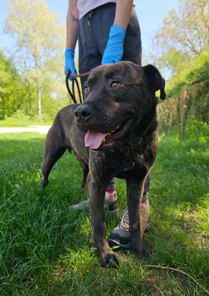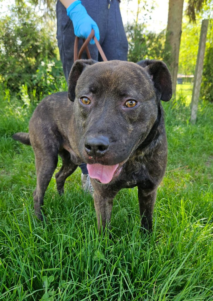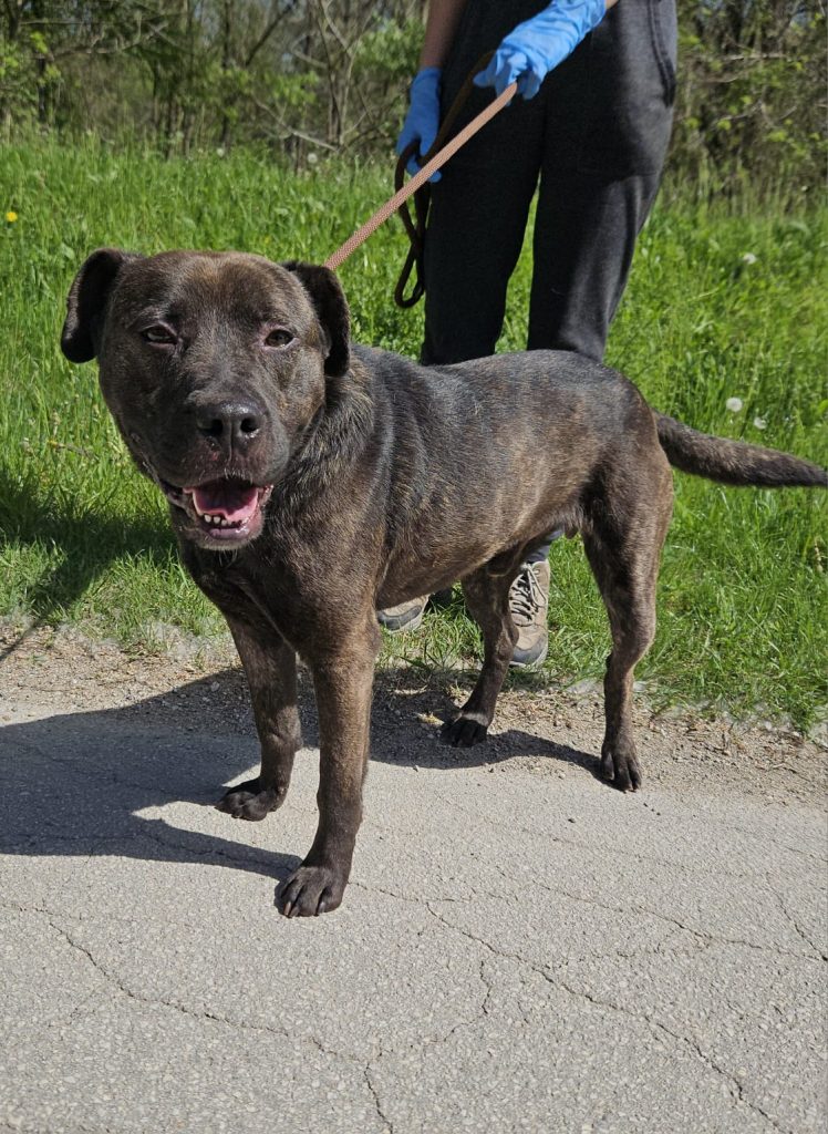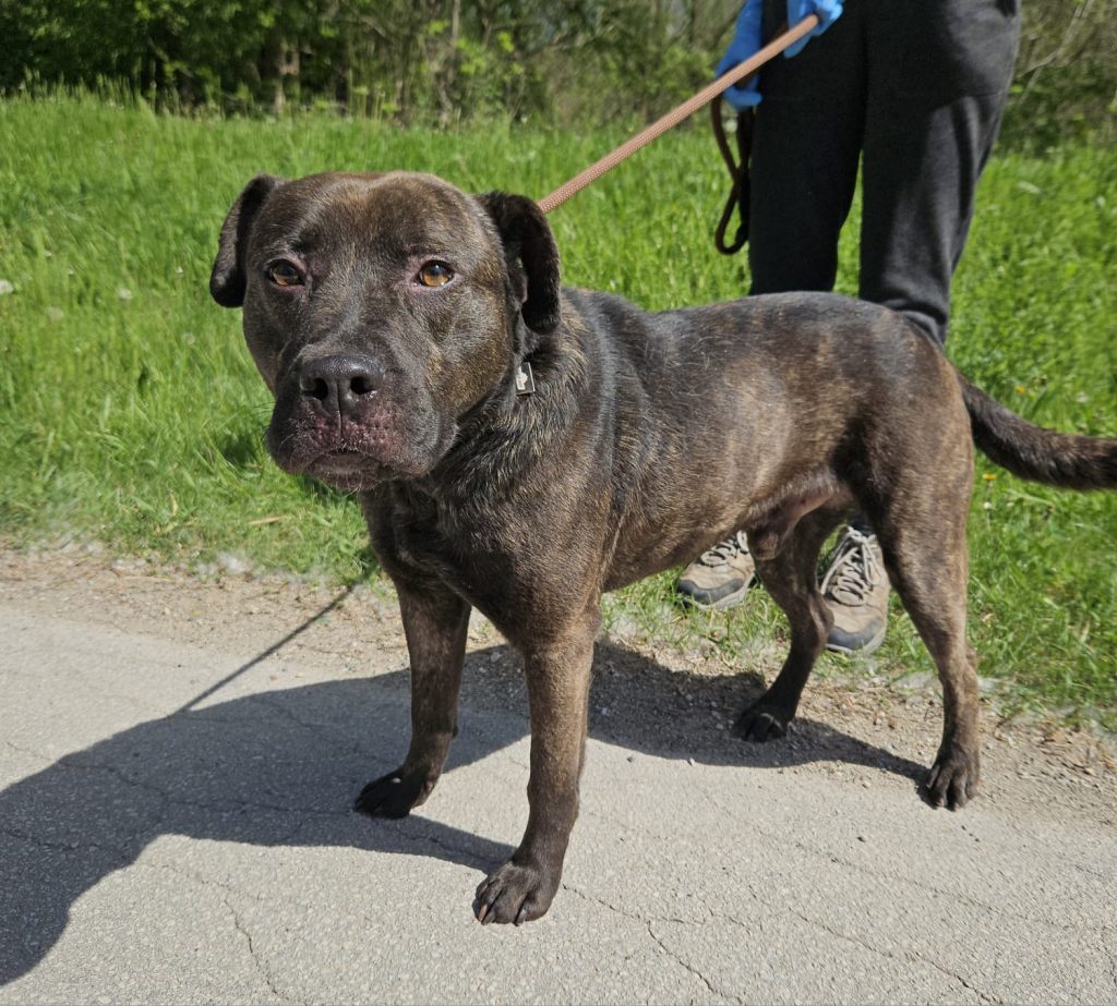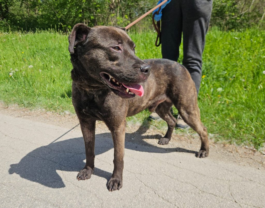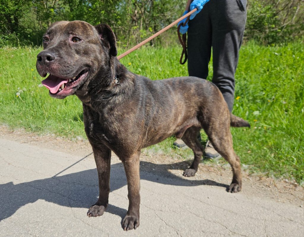 Angelo je pas u tipu američkog stafordskog terijera te se udomljava prema Pravilniku o opasnim psima.